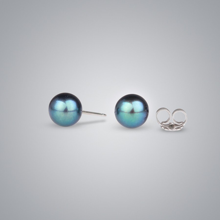 Pearl Earrings with Freshwater Pearls, A Quality and Treated Black Color, 7.0-6.5 mm, with 925 Silver.